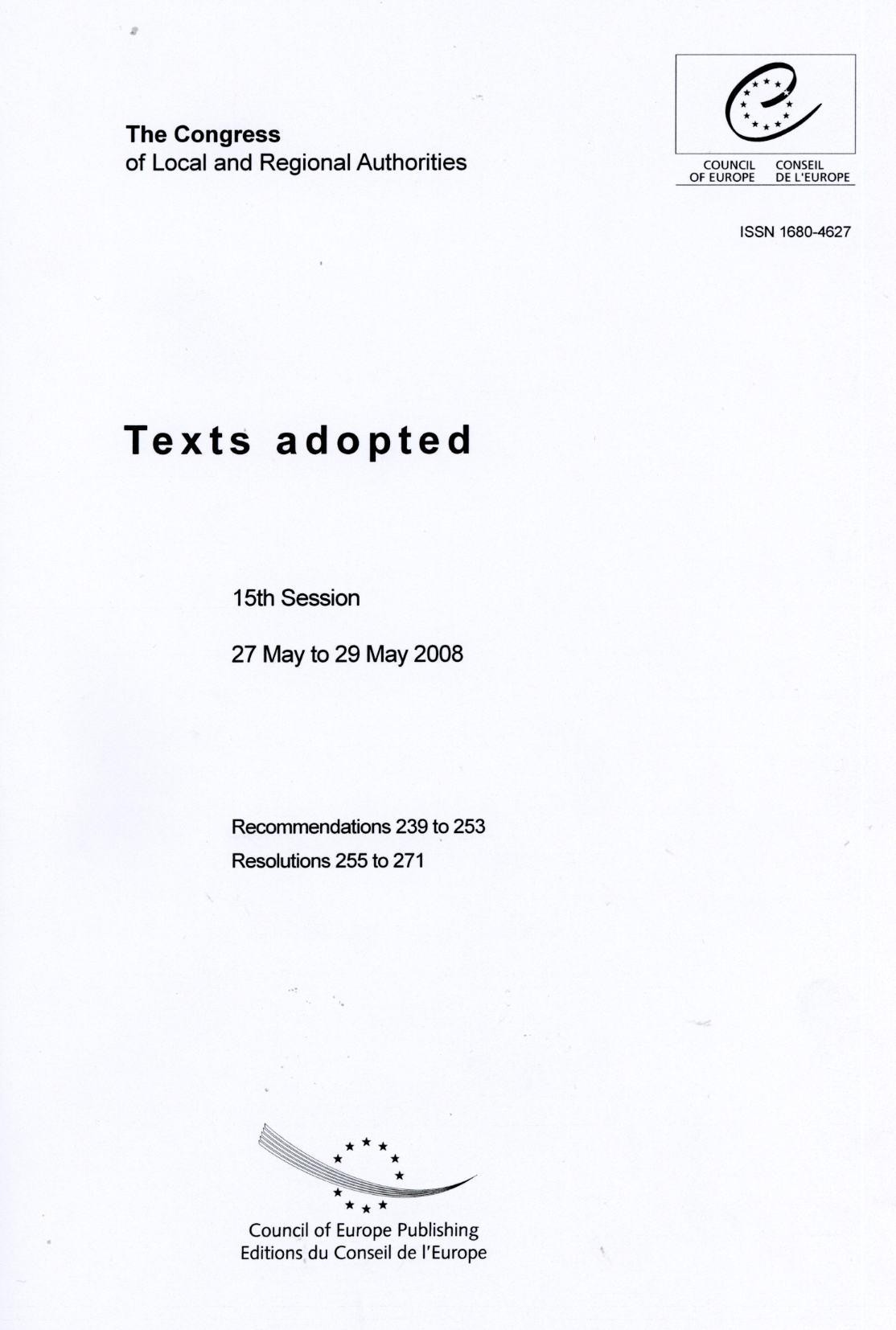 The Congress of Local and Regional Authorities - Texts adopted - 15th Session - 27 May to 29 May 2008 (2009)