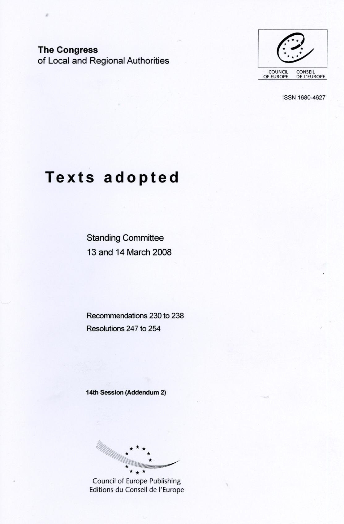 The Congress of Local and Regional Authorities - Texts adopted - Standing Committee 13 and 14 March 2008 - 14th Session (Addendum 2) (2009)