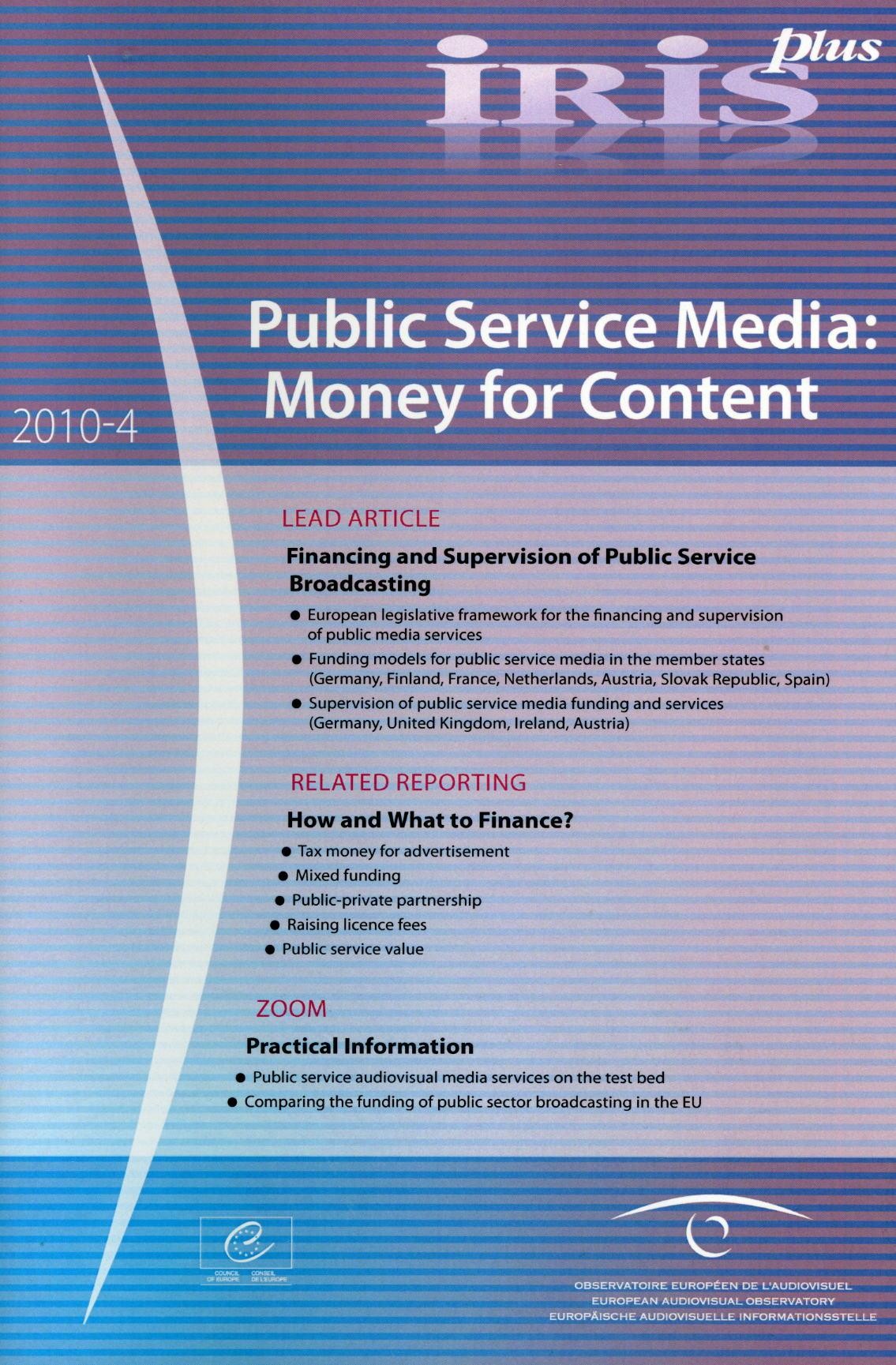 An overview of the European legislative framework is followed by a discussion of concrete models for the funding of public service broadcasting. The applicable legislative arrangements in a number of states that have been selected as examples are discussed, and the recently emerged issue of the obligation to pay broadcasting licence fees for internet-enabled PCs is considered. The supervision of public service broadcasting services in terms of their funding and content - two aspects that are often linked together - is another area on which this lead article focuses. Examples of this supervision are the so-called "public value" test and the "three-stage test".