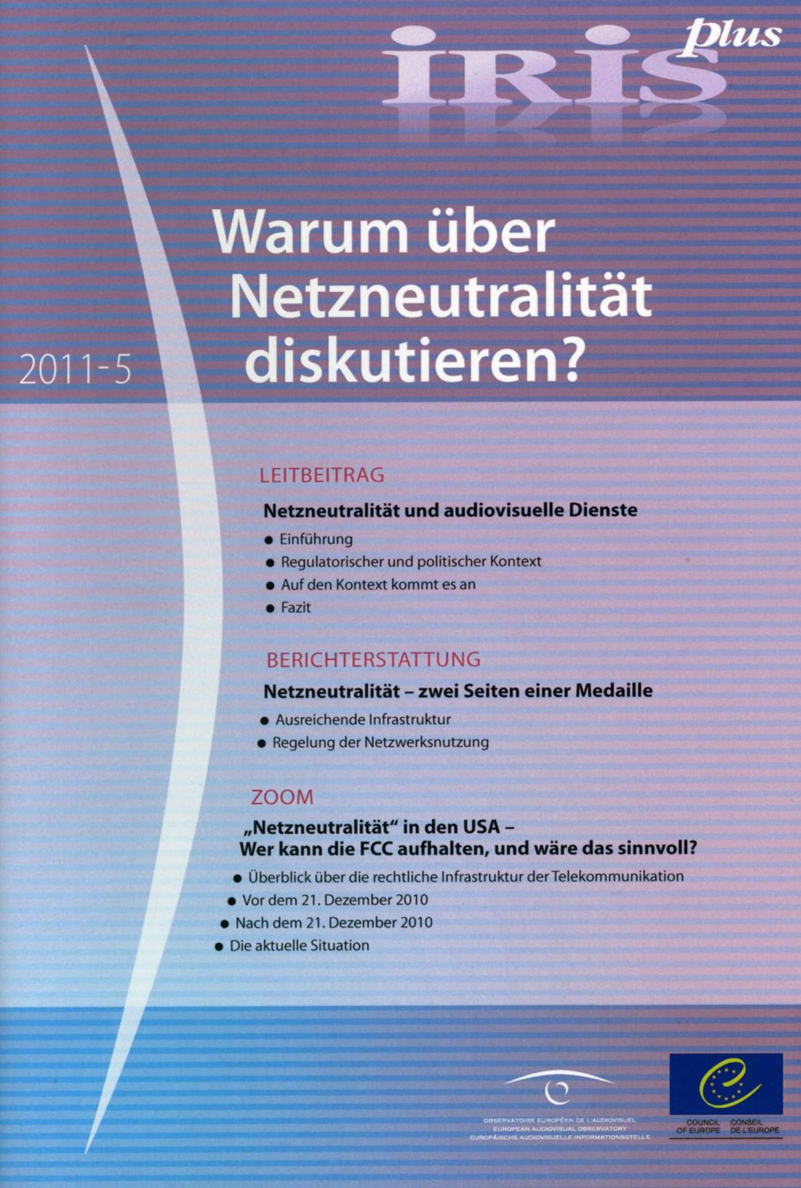 Knappe Übertragungskapazitäten im Internet ist der Ausgangspunkt der der Diskussion, welche unter der Überschrift "Netzneutralität" geführt wird. Der Kern der Diskussion ist die Frage, inwieweit der Gesetzgeber dieser Knappheit und ihren Folgen mit Regulierung begegnen soll, oder ob die Kräfte des freien Markets eine Antwort finden. Diese IRIS plus knüpft damit in gewisser Hinsicht an eine Ausgabe der Reihe IRIS Spezial mit dem Titel "Haben oder nicht haben - Must-Carry-Regeln" an im Bereich des Kabelfernsehens wurde in der Vergangenheit bereits über Must-Carry-Verpflichtungen Rechte auf den Zugang zu Verbreitungsnetzen erteilt.Diese IRIS plus gibt den Stand der Diskussion um Netzneutralität wieder, fasst die jüngsten Entwicklungen des Rechtsrahmens für elektronische Kommunikation zusammen und stellt die Diskussion in Europa derjenigen in den USA gegenüber.