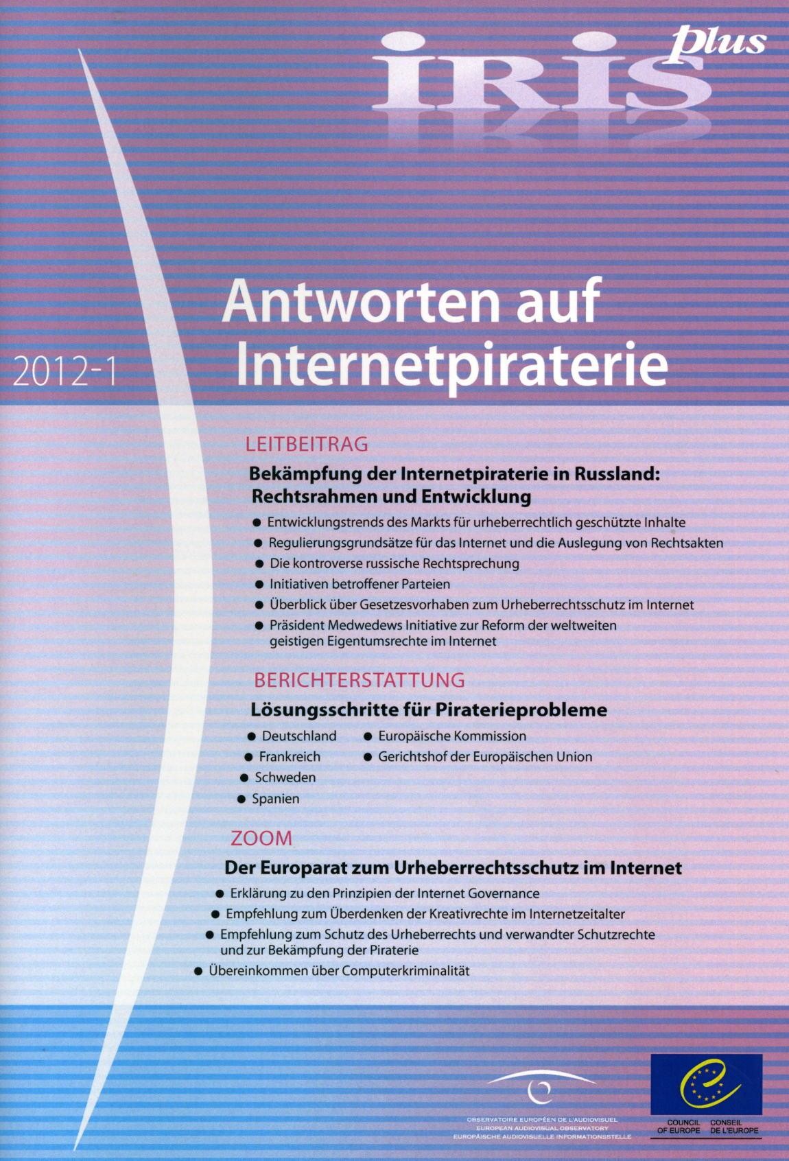 Der heftige Protest, den die Unterzeichung des Anti-Produktpiraterie-Handelsabkommen (Anti-Counterfeiting Trade Agreement, kurz ACTA) in vielen europäischen Länden im Februar 2012 verursacht hat, veranschaulicht beispielhaft den Balanceakt, den der Gesetzgeber bei der Festlegung des Schutzes geistiger Eigentumsrechte zu vollziehen hat. Die Interessen der Nutzer und die der Rechteinhaber bedürfen eines als "gerecht" empfundenen Ausgleichs.So kontrovers die Frage der Ausgestaltung von Urheberrechten diskutiert wird, so herrscht doch relativer Konsens darüber, dass Piraterie, also die vorsätzliche Verletzung dieser Rechte, systematisch bekämpft werden muss. Diese IRIS plus widmet sich dem Thema der Bekämpfung von Internetpiraterie, das besonders durch die ständige Verbesserung der Leistungsfähigkeit des elektronischen Datenaustauschs und der damit einhergehenden Zunahme von Urheberrechtsverletzungen eine besondere Brisanz hat.