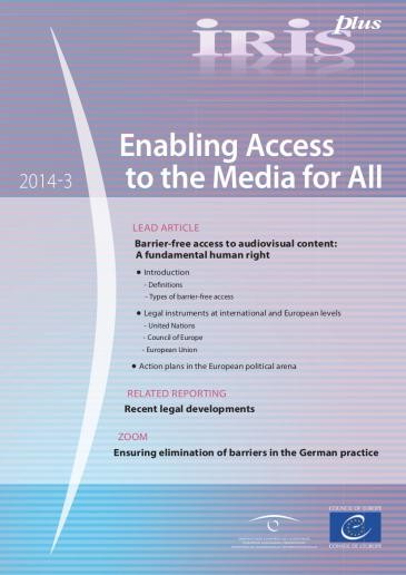 This brand new publication provides a detailed round-up of current measures being applied to cinema, television and internet in order to maximise accessibility for disabled users. The lead article also focuses on the arrival of Digital Terrestrial Television (DTT) in Europe and its consequences for disabled users. Practices related to linear and nonlinear services are also analysed. As well as the different obligations imposed upon public and private broadcasters. This article then goes on to examine the various legal texts currently in force in Europe (UN, Council of Europe and EU legislation). A must-read round-up of the current measures taken in Europe to optimise access to media content for our disabled citizens.