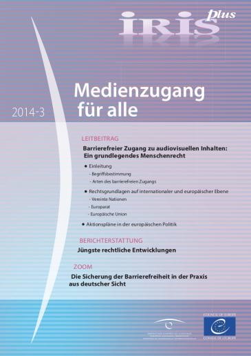 Nie war es so wichtig wie in der heutigen hochvernetzten Welt der Smartphones, Tablets und Smartwatches die Rechte von Menschen mit Behinderungen auf Zugang zu audiovisuellen Inhalten zu schützen. Doch wie funktioniert die Gewährleistung eines optimalen Zugangs in der Praxis? Was tut Europa, um sicherzustellen, dass in unserer Gesellschaft die Menschen mit Behinderung, die 15% der Bevölkerung ausmachen, Zugang zu Medieninhalten haben? Dieser hochaktuelle Bericht vermittelt einen guten Überblick über alle technische und praktische Maßnahmen, die darauf ausgerichtet sind, einen optimalen Medienzugang zu gewährleisten, und beschreibt die derzeit in Europa geltenden gesetzlichen Bestimmungen.