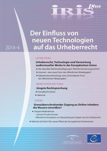 Durch die digitale Revolution hat sich unser Zugriff auf urheberrechtlich geschützte Werke vollkommen verändert. Onlinedienste, Streaming, Torrents und alle anderen digitalen Verbreitungswege stellen den bestehenden Rahmen der aktuellen Gesetzgebung zum Urheberrecht in Frage. Auf der Suche nach einer geeigneten Regulierungsstruktur scheinen die Gesetzgeber den neuesten technischen Entwicklungen stets hinterherzujagen. Diese letzte IRIS plus des Jahres 2014 befasst sich mit der immer größer werdenden Kluft zwischen der aktuellen Gesetzgebung zum Urheberrecht für audiovisuelle Inhalte und dem durch technologische Neuerungen massiv veränderten Spielfeld, das sie regulieren soll …