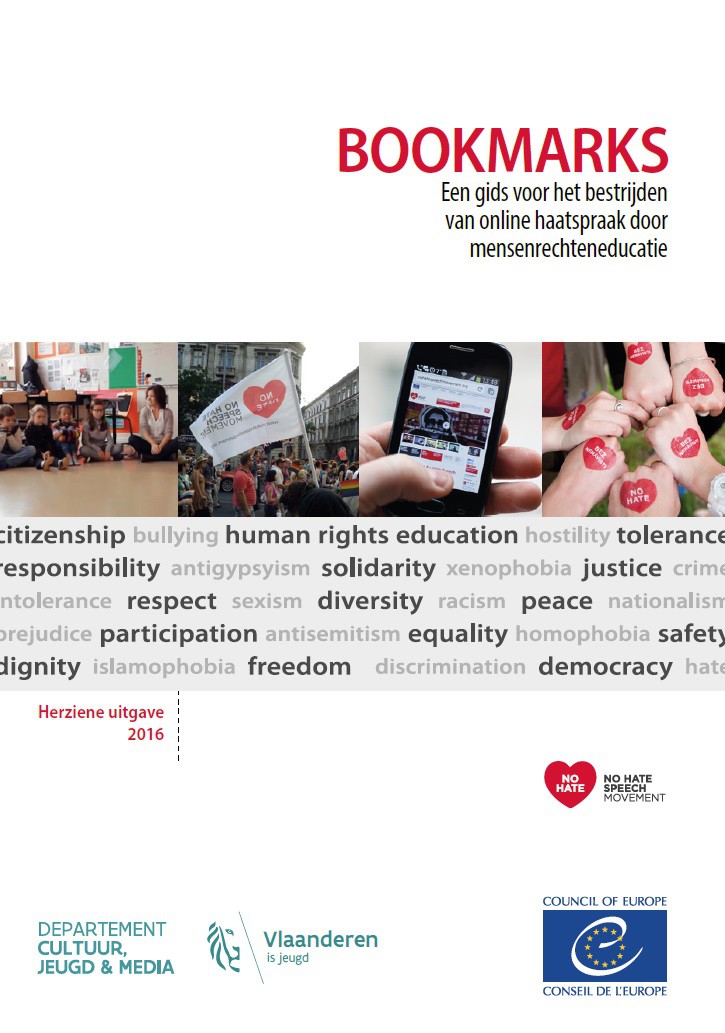 Bookmarks is gepubliceerd ter ondersteuning van de jongerencampagne No Hate Speech Movement van de Raad van Europa voor online mensenrechten. Bookmarks is nuttig voor opvoeders die online haatspraak willen aanpakken vanuit het oogpunt van de mensenrechten, zowel binnen als buiten het formele onderwijssysteem. De gids is bedoeld voor activiteiten met lerenden tussen 13 en 18 jaar, maar de activiteiten kunnen ook aangepast worden aan andere leeftijdscategorieën.