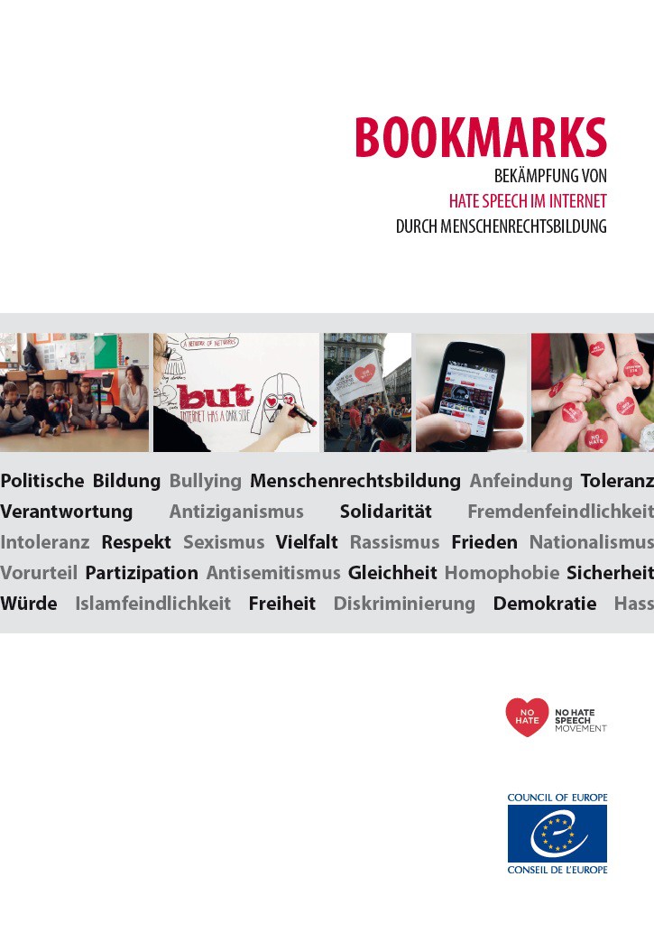 Bookmarks ergänzt das No Hate Speech Movement, die Jugendkampagne des Europarats für Menschenrechte im Internet. Das Handbuch richtet sich an Lehrende innerhalb und außerhalb des formalen Bildungssystems, die das Thema Hate Speech im Internet aus einer menschenrechtlichen Perspektive adressieren möchten. Bookmarks ist auf die Arbeit mit 13- bis 18-Jährigen ausgelegt, die Übungen können jedoch auch an andere Altersgruppen angepasst werden.