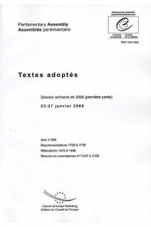 Ce volume regroupe les textes adoptés par l'Assemblée parlementaire du Conseil de l'Europe lors de la première partie de la session ordinaire de 2006 (23-27 janvier 2006). L'Assemblée se réunit quatre fois par an (janvier, avril, juin et octobre).L'Assemblée adopte trois types de textes: des avis, des recommandations et des résolutions.Les avis se réfèrent généralement à des questions qui lui ont été soumises par le Comité des Ministres, organe exécutif de l'Organisation. Ce dernier consulte l'Assemblée avant de prendre certaines décisions importantes telles que l'adhésion de nouveaux Etats membres au Conseil de l'Europe, l'adoption des projets de conventions ou de budget.Les recommandations comportent des propositions adressées au Comité des Ministres, dont l'application est du ressort des gouvernements.Les résolutions reflètent les décisions que l'Assemblée est habilitée à régler, ou l'expression d'opinions qui engagent sa seule responsabilité ou s'adressent aux parlements nationaux.Les renvois en commissions: les propositions de recommandation ou de résolution ainsi que les communications - en particulier du Comité des Ministres et du Secrétaire Général - font l'objet d'une proposition du Bureau de l'Assemblée pour la saisine de la commission compétente, qui doit être ratifiée par l'Assemblée parlementaire.Les publications de l'Assemblée parlementaire comprennent, en outre, les Comptes rendus, les Documents de séance, les Ordres du jour et procès-verbaux.