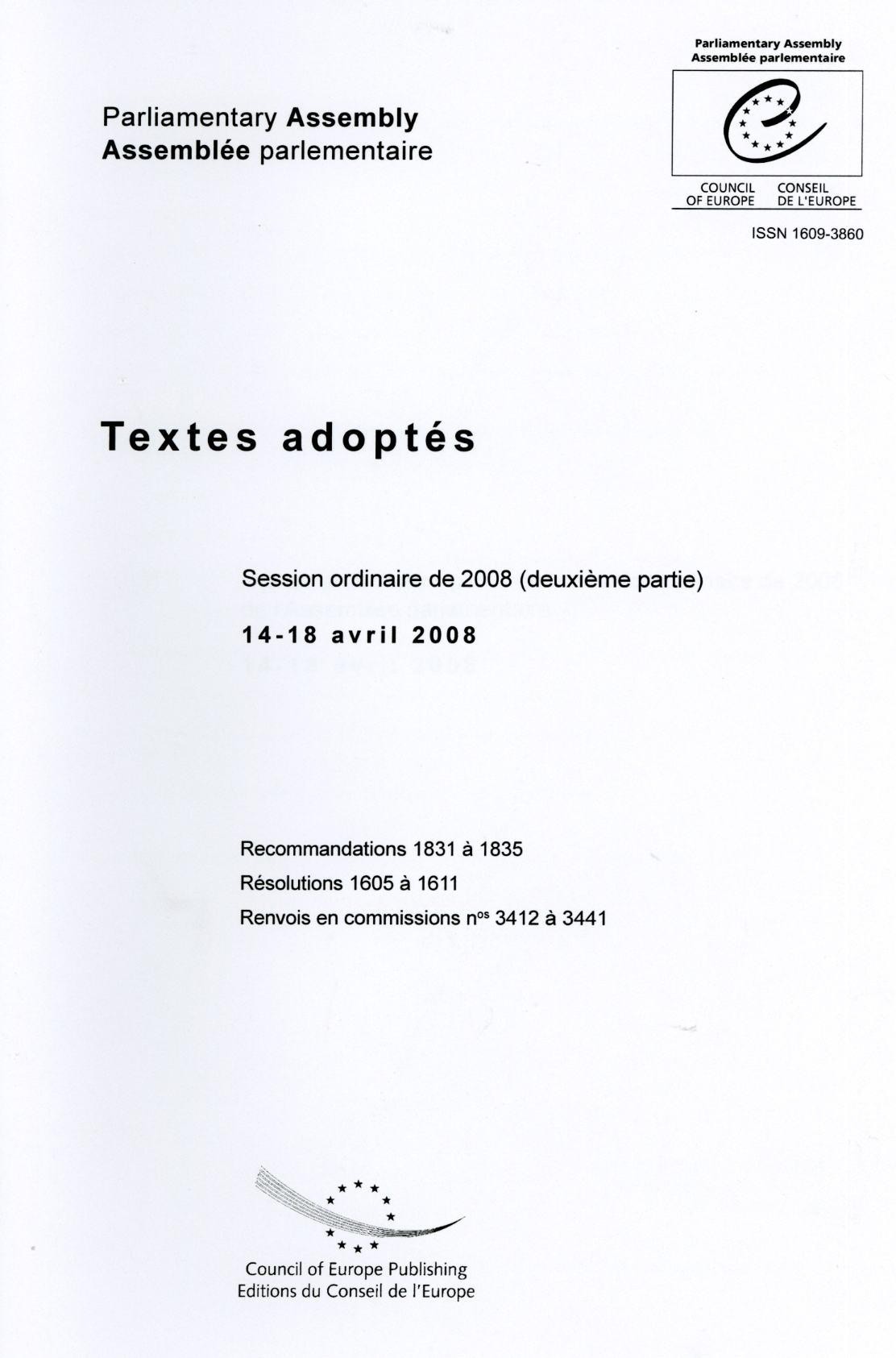 Assemblée parlementaire - Textes adoptés - Session ordinaire de 2008 (deuxième partie) 14-18 avril 2008 (2008)