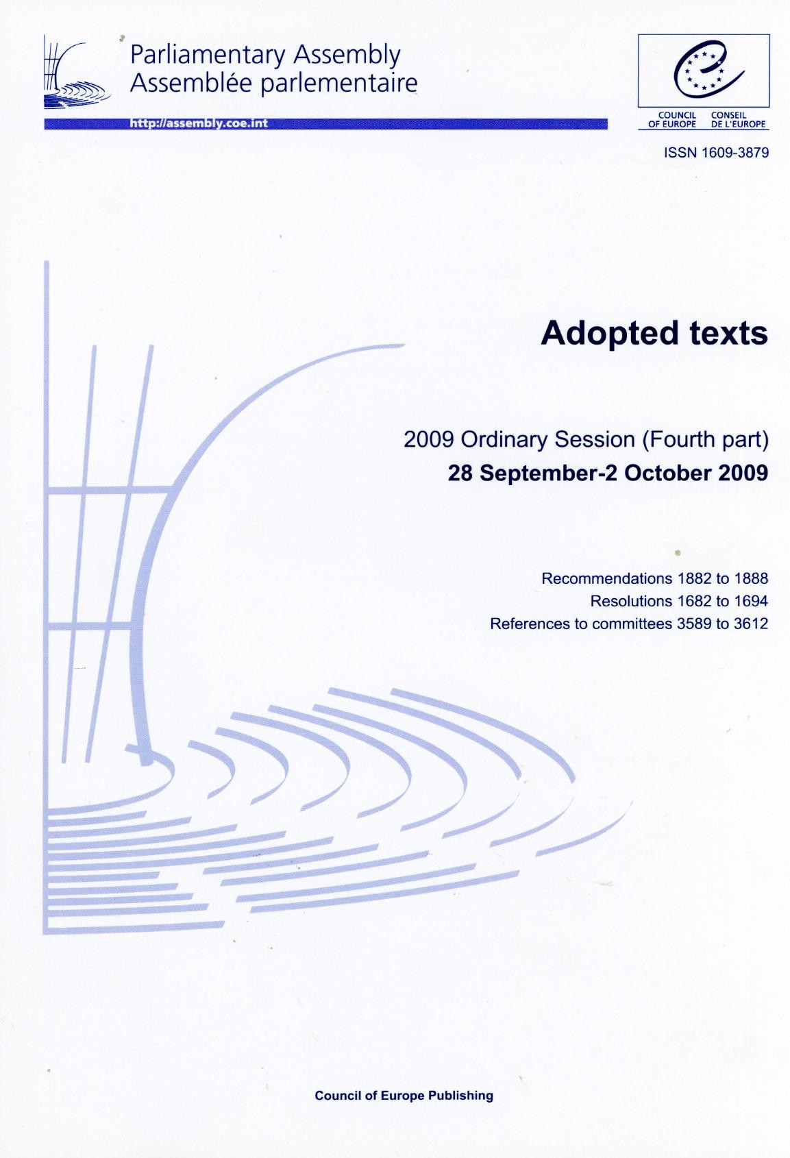 Parliamentary Assembly - Adopted texts - 2009 Ordinary Session (Fourth part), 28 September-2 October 2009 (2010)