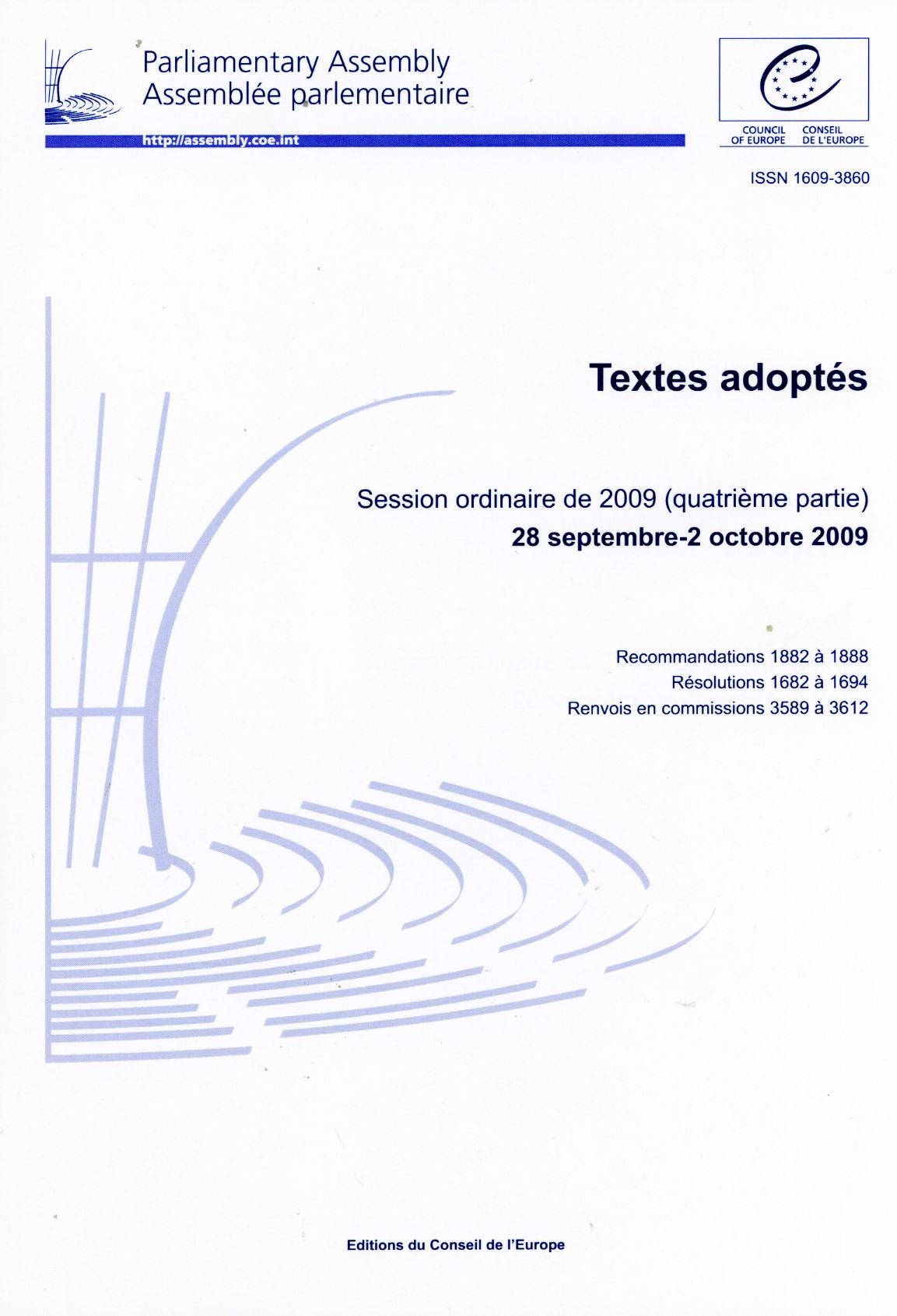 Assemblée parlementaire - Textes adoptés - Session ordinaire de 2009 (quatrième partie), 28 septembre-2 octobre 2009 (2010)