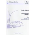 L'Assemblée parlementaire du Conseil de l'Europe publie un volume de textes adoptés lors de chacune de ses quatre parties de session et des réunions de sa Commission permanente.L'Assemblée, ou en son nom la Commission permanente, adopte trois types de textes: des avis, des recommandations et des résolutions.Les avis se réfèrent généralement à des questions qui lui ont été soumises par le Comite des Ministres, organe exécutif de l'Organisation. Ce dernier consulte l'Assemblée avant de prendre certaines décisions importantes telles que l'adhésion de nouveaux Etats membres au Conseil de l'Europe, l'adoption des projets de conventions ou de budget.Les recommandations comportent des propositions adressées au Comite des Ministres, dont l'application est du ressort des gouvernements.Les résolutions reflètent les décisions que Assemblée est habilitée à régler, ou l'expression d'opinions qui engagent sa seule responsabilité ou s'adressent aux parlements nationaux.Les renvois en commissions: les propositions de recommandation ou de résolution, ainsi que d'autres décisions, font l'objet d'une proposition du Bureau de l'Assemblée pour la saisine de la commission compétente, qui doit être ratifiée par l'Assemblée.