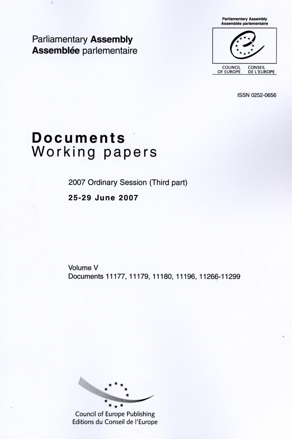 Volume V and VI bring together all the documents presented to the Parliamentary Assembly of the Council of Europe at the third part of the 2007 Ordinary Session (25-29 June 2007). The Assembly meets four times every year (January, April, June and October).The Parliamentary Assembly's publications include, among others, Adopted texts, the Official report of debates and Orders of the day and minutes of proceedings.
