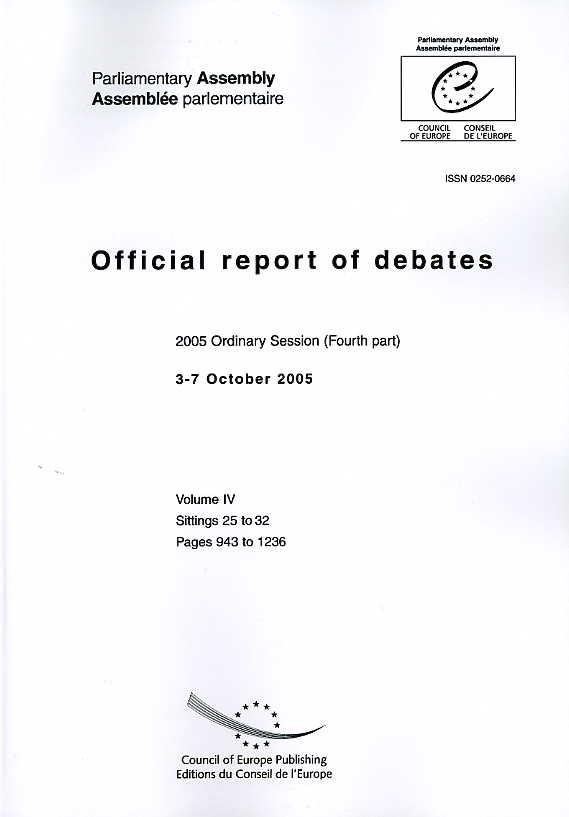 Parliamentary Assembly - Official report of debates - 2005 Ordinary Session (Fourth part) 3-7 October 2005 (2006)