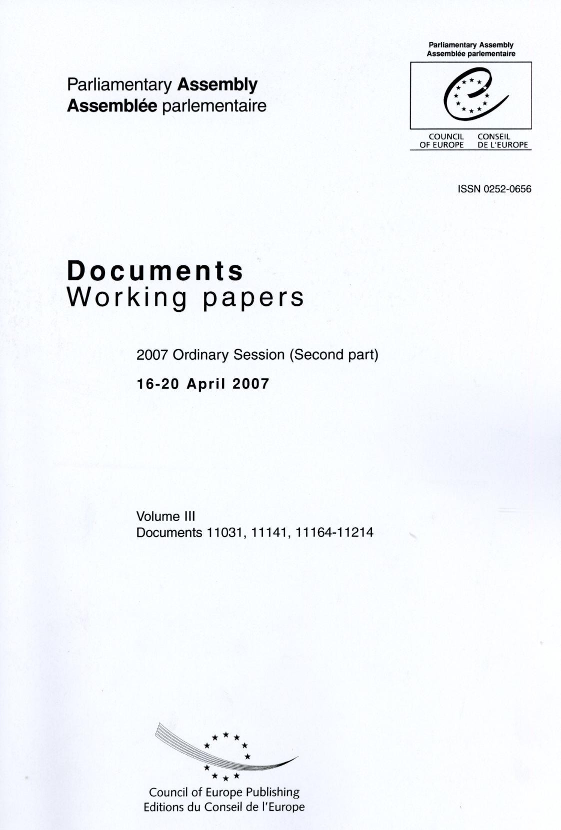 Volumes III and IV bring together all the documents presented to the Parliamentary Assembly of the Council of Europe at the third part of the 2007 Ordinary Session (16-20 April 2007). The Assembly meets four times every year (January, April, June and October).The Parliamentary Assembly's publications include, among others, Adopted texts, the Official report of debates and Orders of the day and minutes of proceedings.