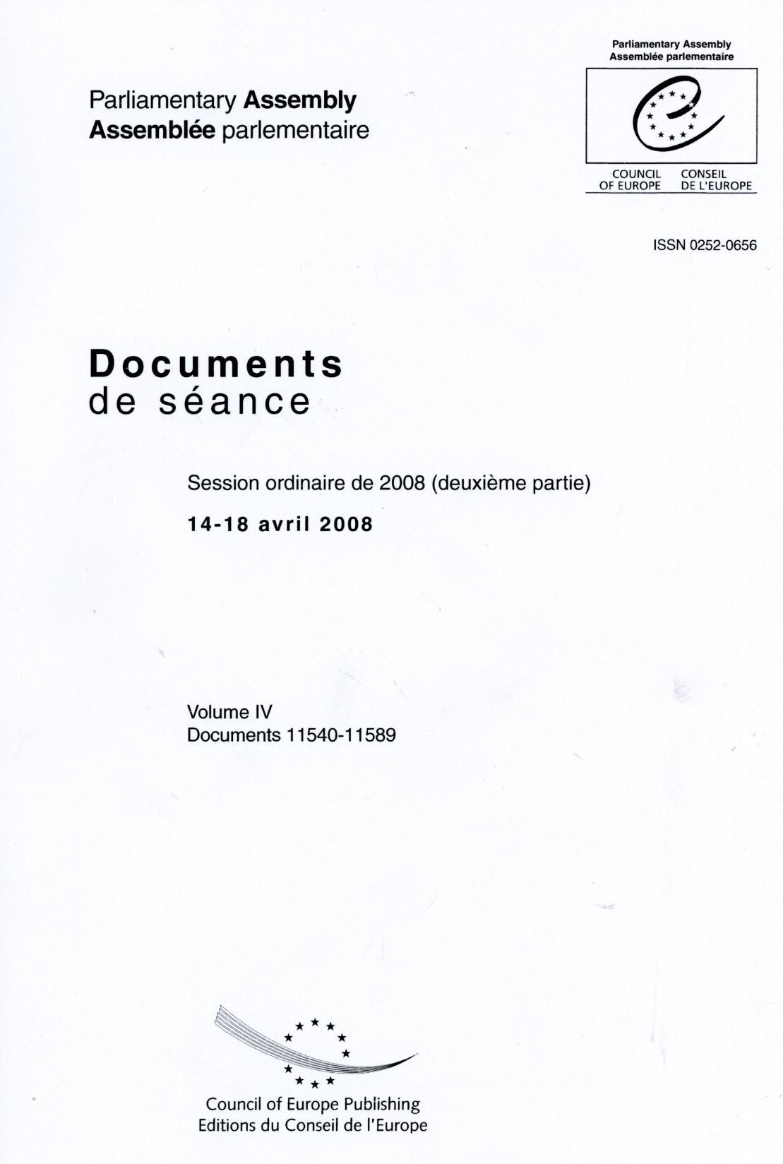 Assemblée Parlementaire - Documents de séance - Session ordinaire de 2008 (deuxième partie), 14-18 avril 2008, Volume IV (2008)