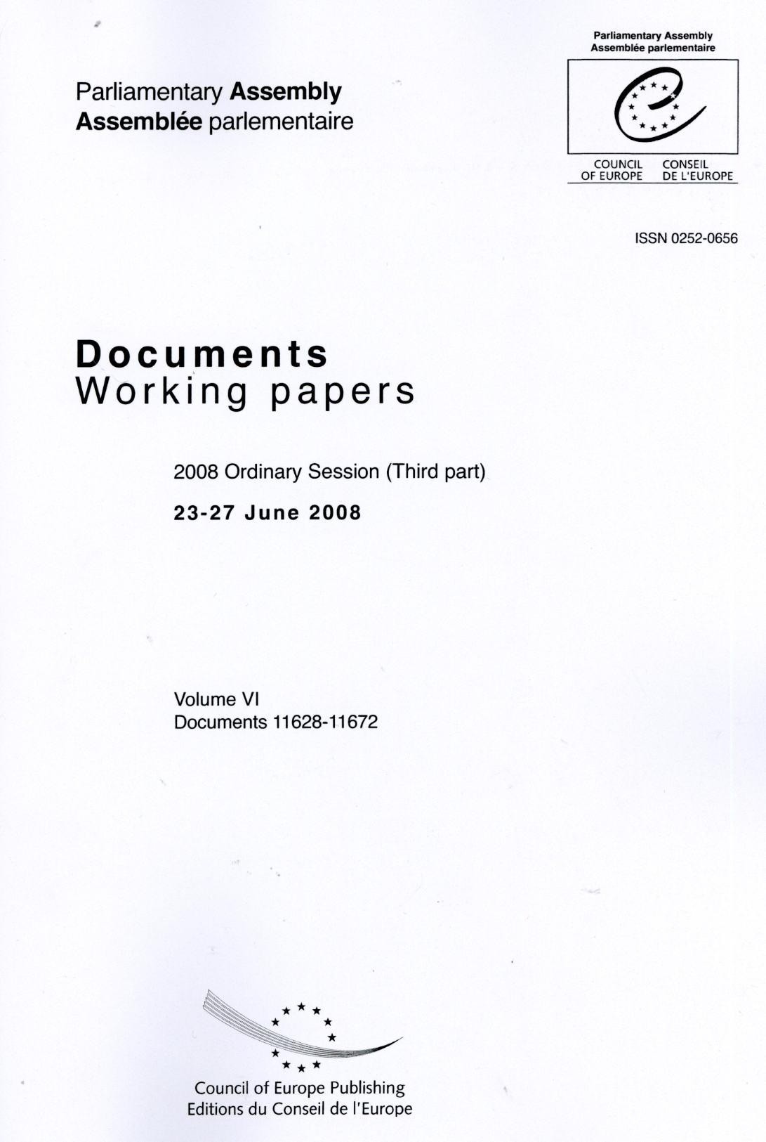 Parliamentary Assembly - Working papers - 2008 Ordinary Session (Third part), 23-27 June 2008 - Volume VI (2009)