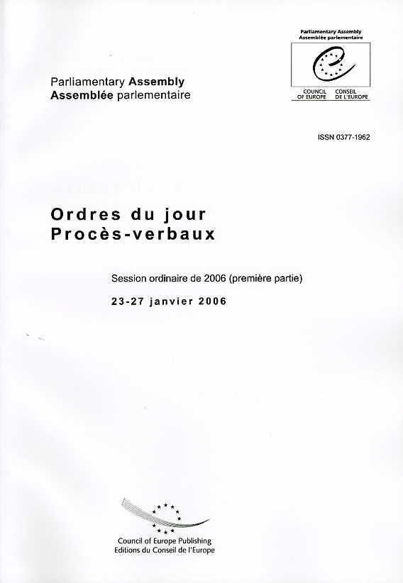 Assemblée parlementaire - Ordres du jour / Procès-verbaux - Session ordinaire de 2006 (première partie) 23-27 janvier 2006 (2006)