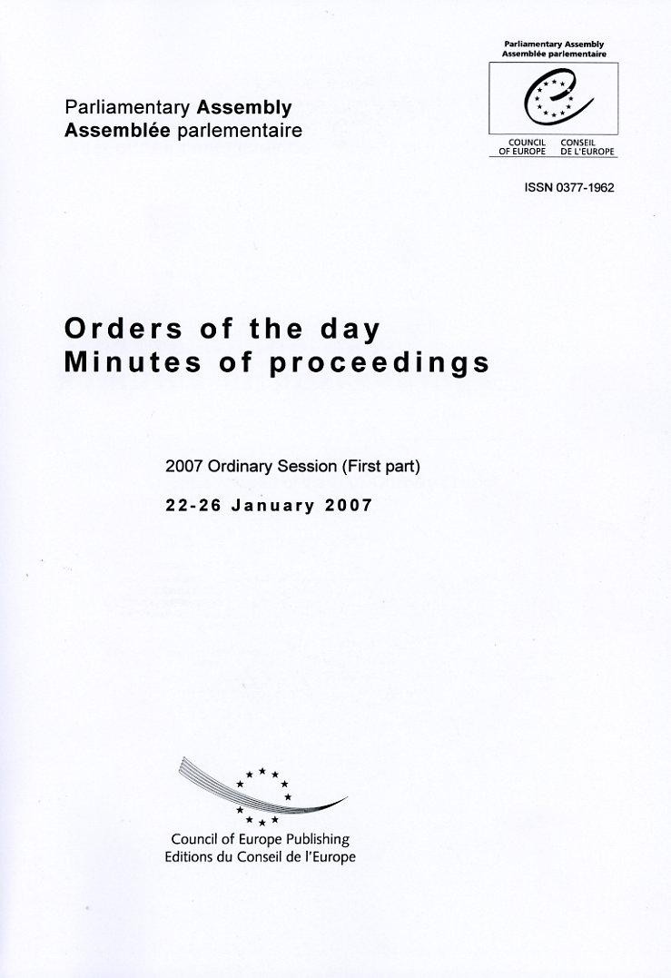 Parliamentary Assembly - Orders of the day / Minutes of proceedings - 2007 Ordinary Session (First part) 22-26 January 2007 (2007)