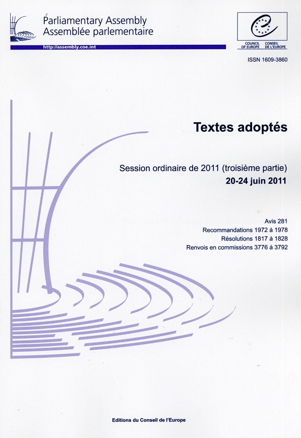 Assemblée parlementaire - Textes adoptés - Session ordinaire de 2011 (troisième partie) 20-27 juin 2011 (2011)