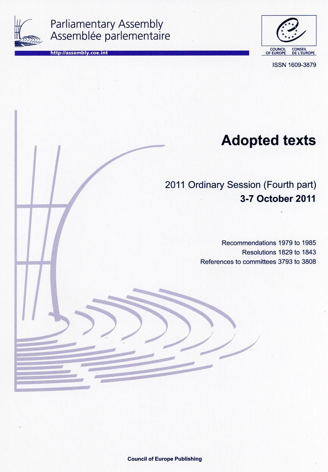 Parliamentary Assembly - Adopted texts - 2011 Ordinary Session (Fourth part) 3-7 October 2011 (2012)