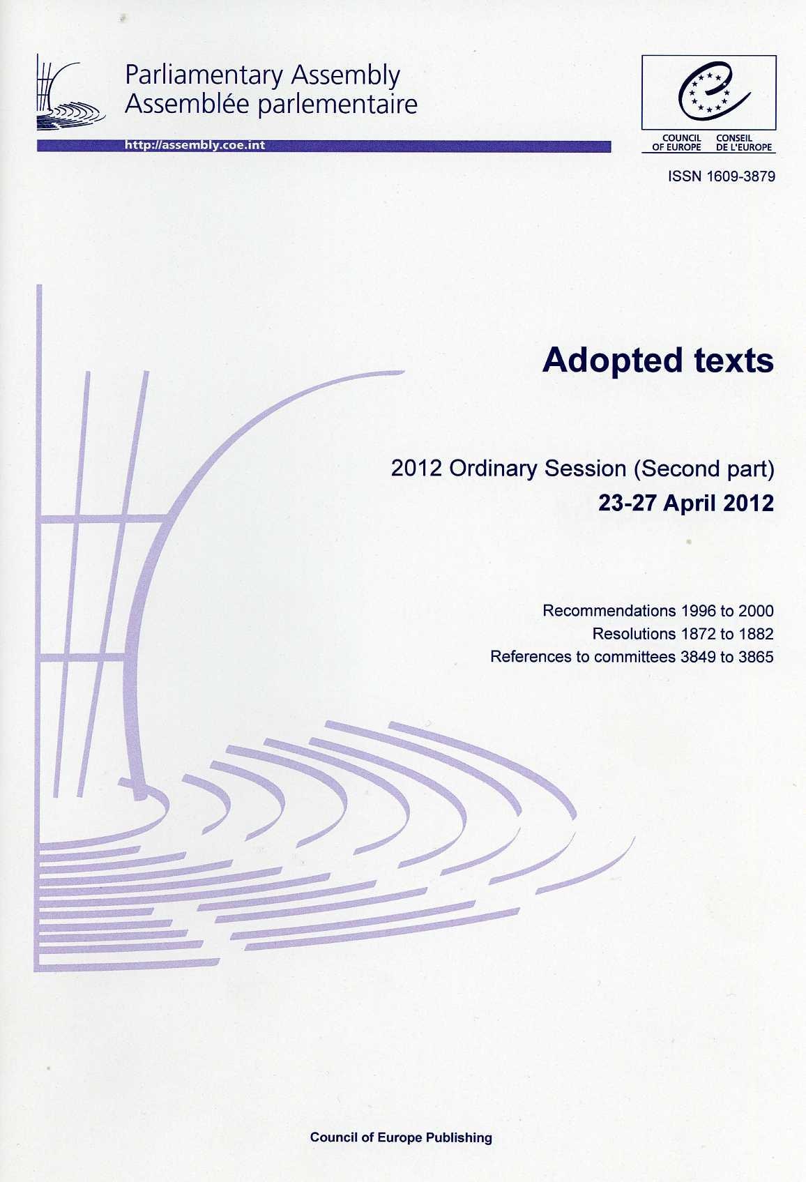 Parliamentary Assembly - Adopted texts - 2012 Ordinary Session (Second part) 23-27 April 2012 (2012)