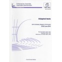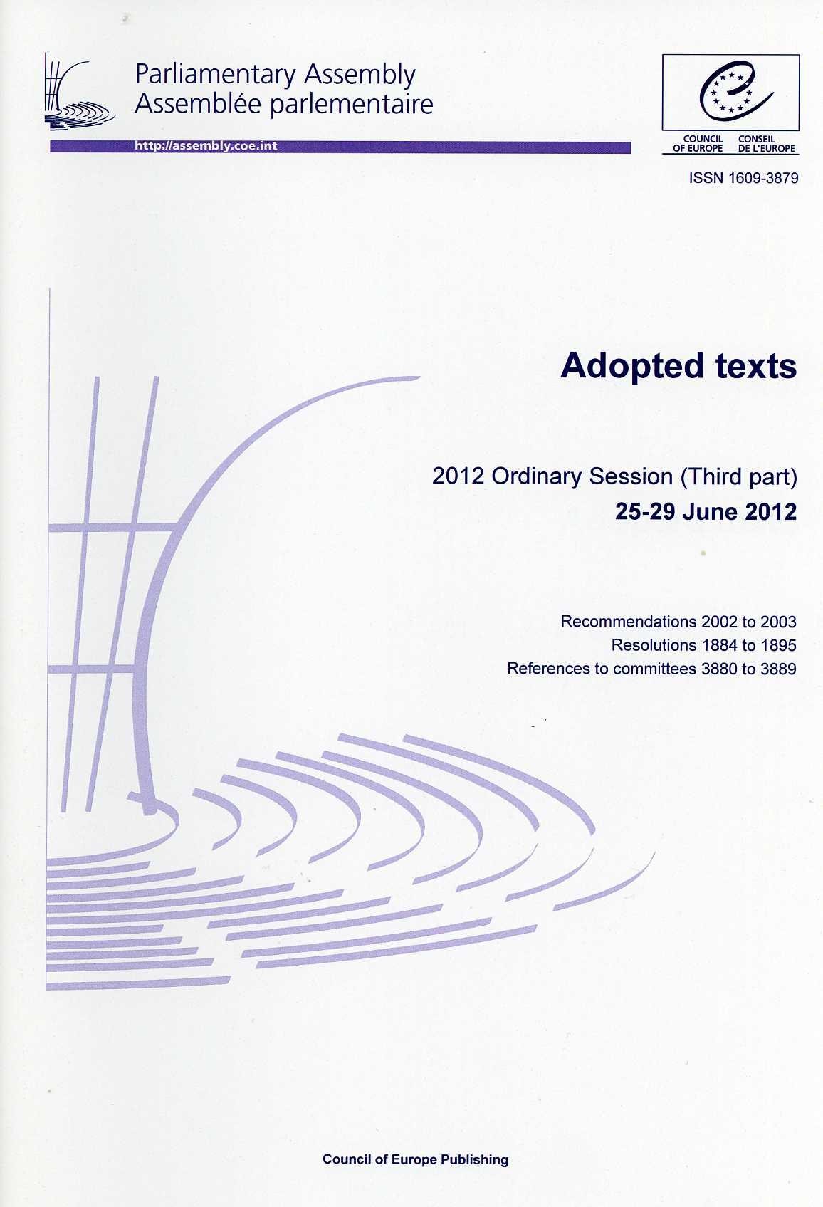 The Parliamentary Assembly of the Council of Europe publishes a volume of adopted texts for each of its four part-sessions and Standing Committee meetings.The Assembly, or the Standing Committee on its behalf, can adopt three different types of texts: opinions, recommendations and resolutions.Opinions are mostly expressed by the Assembly on questions put to it by the Committee of Ministers, such as the admission of new member states to the Council of Europe, but also on draft conventions, or the budget.Recommendations contain proposals addressed to the Committee of Ministers, the implementation of which is within the competence of governments.Resolutions embody decisions by the Assembly on questions which it is empowered to put into effect or expressions of views for which it alone is responsible. They can also be addressed to national parliaments.References to committees: the Bureau of the Assembly decides whether communications - in particular from the Committee of Ministers and from the Secretary General - and motions for recommendations and resolutions should be referred to the appropriate committee for action, if any. Referrals are then ratified by the Parliamentary Assembly.