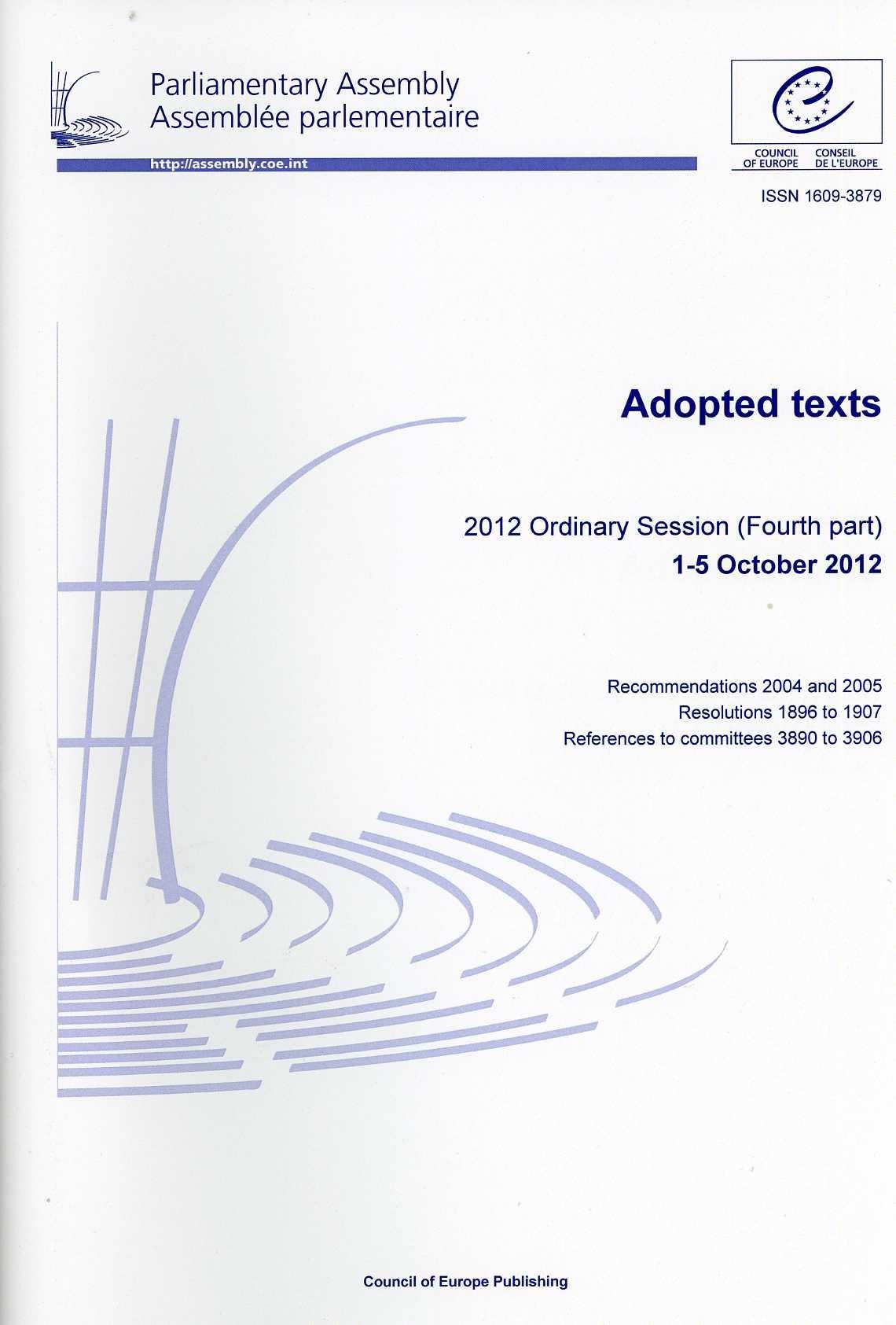 Parliamentary Assembly - Adopted texts - 2012 Ordinary Session (Fourth part) 1-5 October 2012 (2013)
