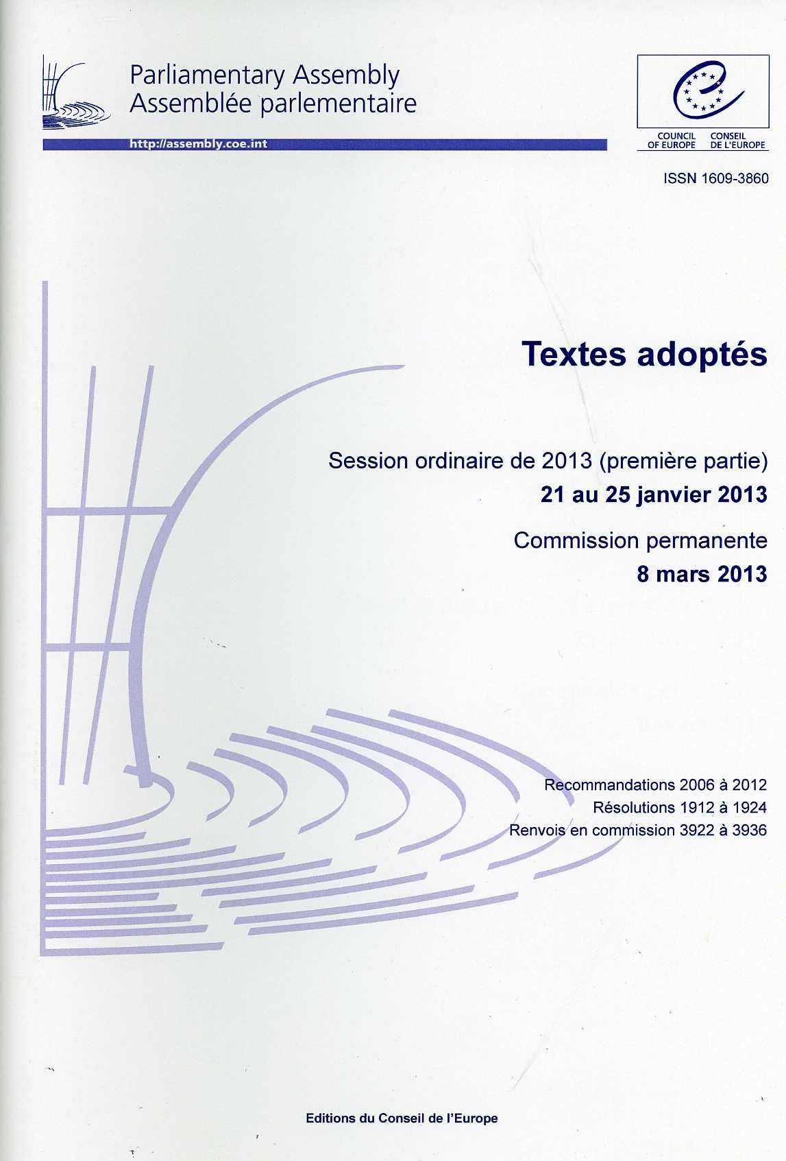 Parliamentary Assembly - Adopted texts - 2013 Ordinary Session (First part) 21-25 January 2013, Standing Committee 8 March 2013 (2013)