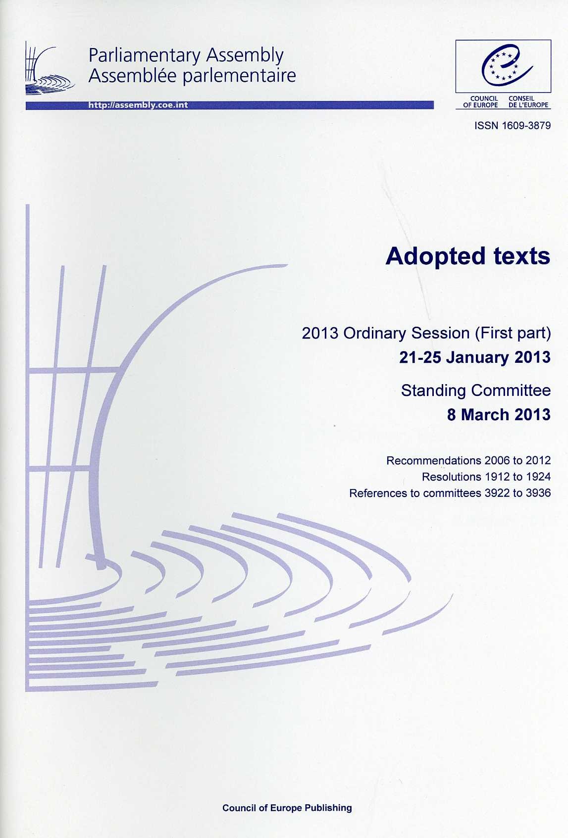 Assemblée parlementaire - Textes adoptés - Session ordinaire de 2013 (première partie) 21 au 25 janvier 2013, Commission permanente 8 mars 2013 (2013)