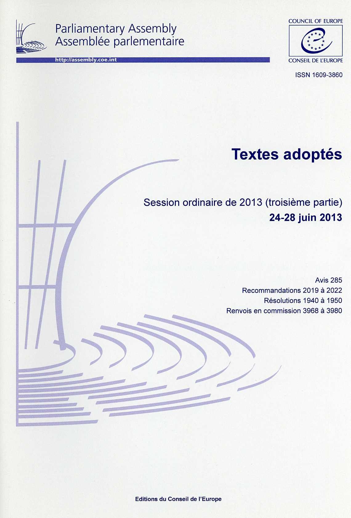Assemblée parlementaire - Textes adoptés - Session ordinaire de 2013 (troisième partie) 24-28 juin 2013 (2013)