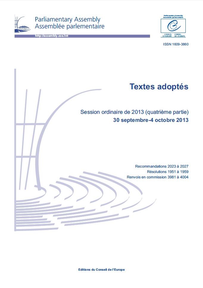 L’Assemblée parlementaire du Conseil de l’Europe publie un volume de textes adoptés lors de chacune de ses quatre parties de session et des réunions de sa Commission permanente.
