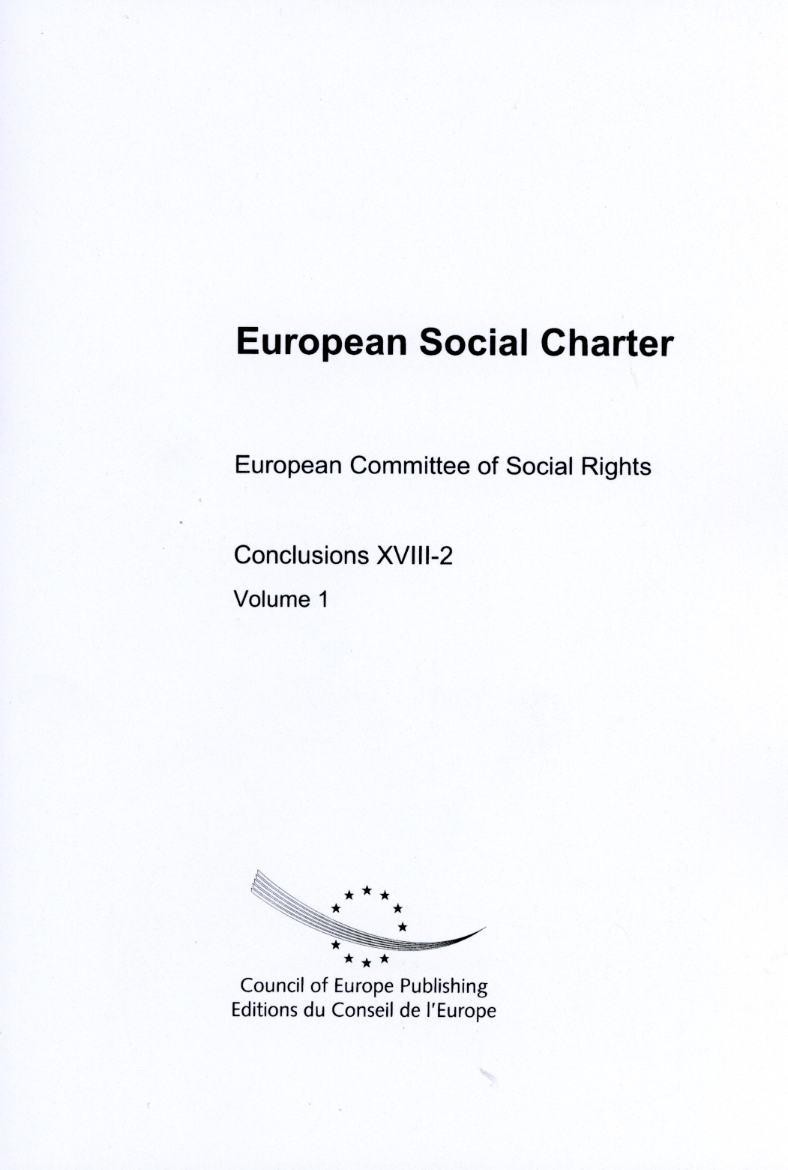 European Social Charter - European Committee of Social Rights - Conclusions XVIII-2, Volume 1 (2007)