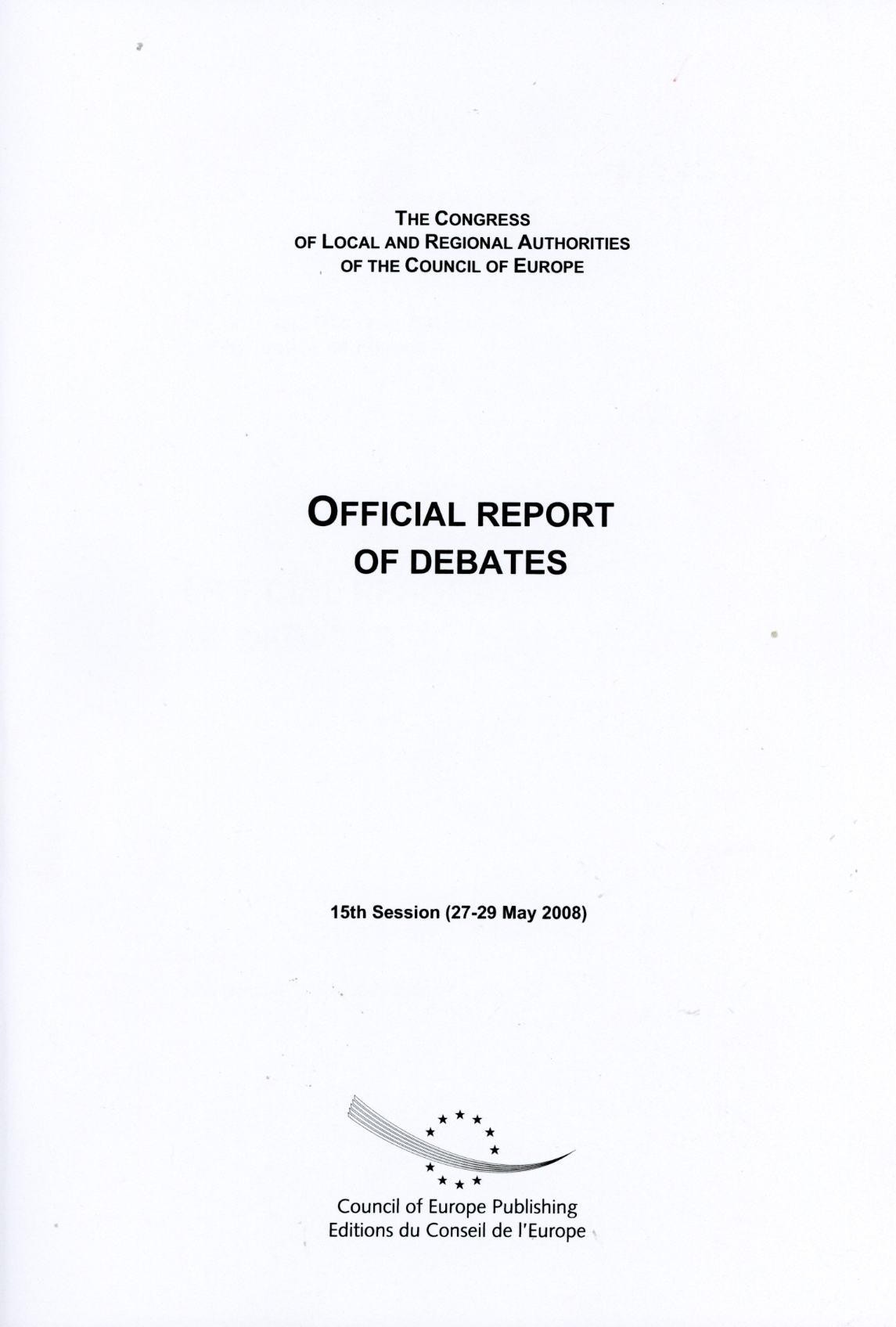 Congress of Local and Regional Authorities of Europe - Official report of debates - 15th Session (27-29 May 2008) (2009)