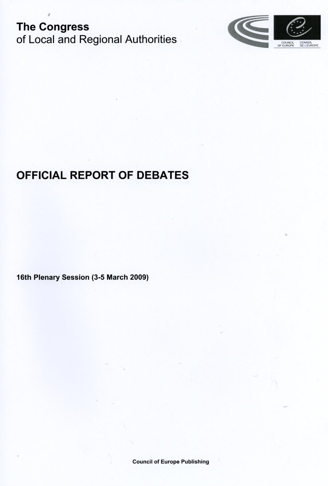 Congress of Local and Regional Authorities of Europe - Official report of debates - 16th Plenary Session (3-5 March 2009) (2010)