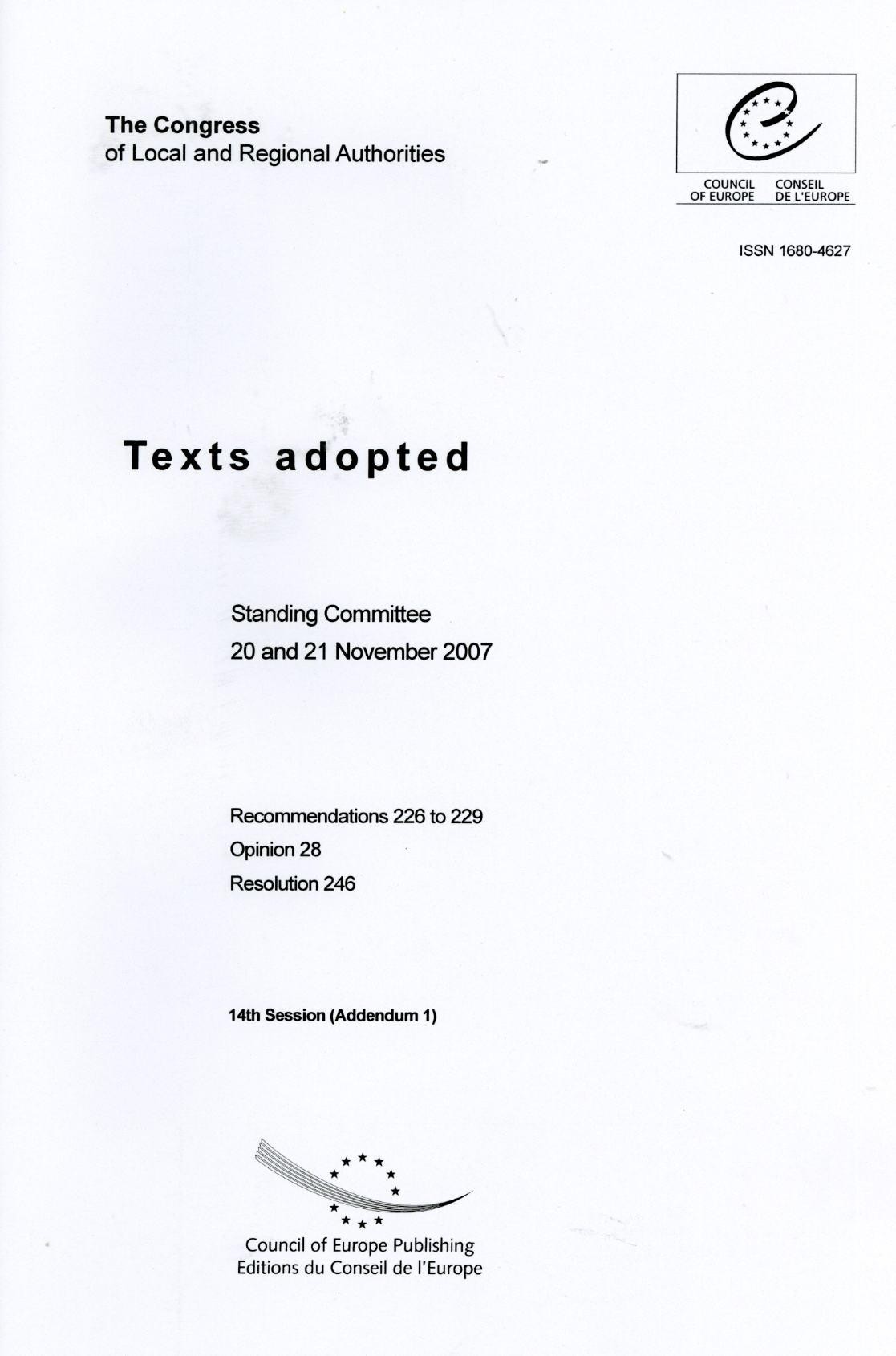 The Congress of Local and Regional Authorities - Texts adopted - Standing Committee 20 and 21 November 2007 - 14th Session (Addendum 1) (2008)