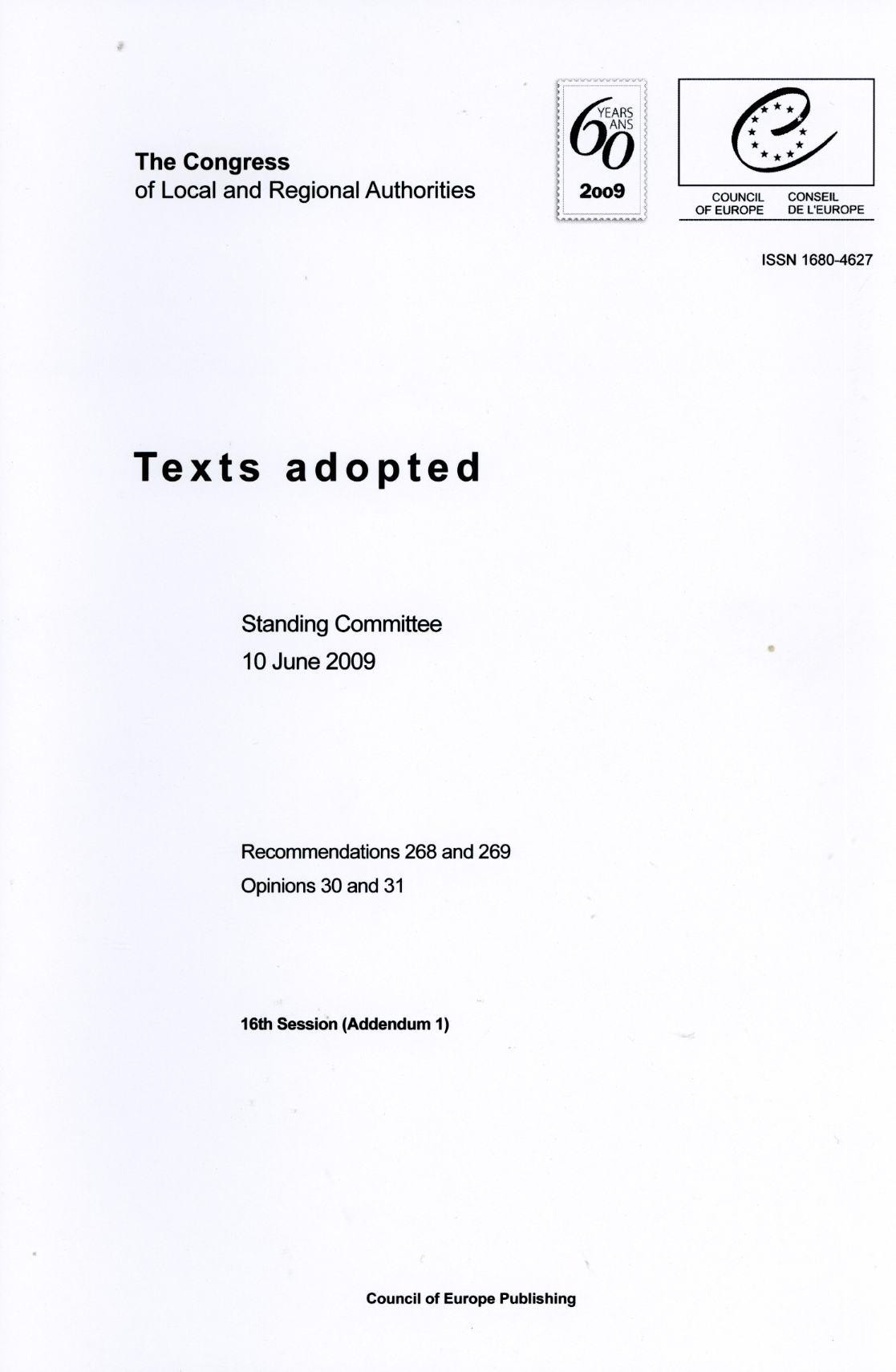 The Congress of Local and Regional Authorities - Texts adopted - Standing Committee, 10 June 2009 - 16th Session (Addendum 1) (2010)