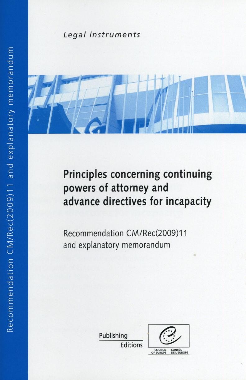 Current demographic trends tend towards an increase in the number of elderly people becoming incapable of protecting their own interests due to an impairment or insufficiency of their personal faculties. In addition, the circumstances in which adults become incapacitated are increasingly numerous.The recommendation covers both continuing powers of attorney and advance directives and focuses on aspects such as content, appointment and role of the attorney, form, entry into force, revocation and termination.In contrast to existing instruments in this field, this recommendation brings something new to the table, as it deals primarily with decisions made privately by the persons concerned. Self-determination, according to this instrument, implies that the granters, to a large extent, are free to make decisions regarding their future life.