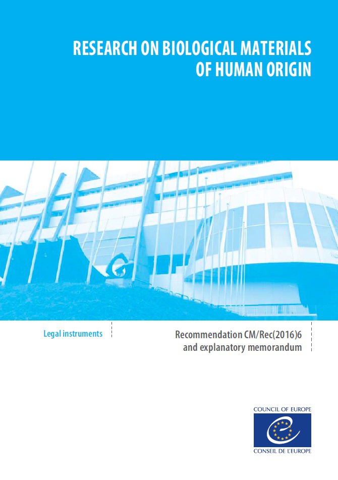 Recommendation CM/Rec(2016)6 is the outcome of a re-examination of Recommendation Rec(2006)4 on research on biological materials of human origin undertaken by the Council of Europe in 2012. It takes into account new developments in the field, such as the increasingly diverse origin of biological materials stored in collections, the difficulty to guarantee the nonidentifiability of such samples, the increasing amount of research involving materials from different collections, and the importance of protecting the rights of persons not able to consent.