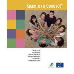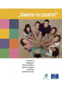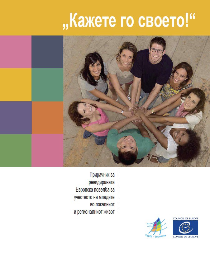 Според Повелбата, учеството подразбира да се има право, средства, простор и можност, а онаму каде што е потребно, и поддршка за да се учествува и за да се влијае на одлуките, но и да се учествува во дејствата и во активностите со цел да се придонесе кон градење подобро општество. Прирачникот „Кажете го своето!“ претставува едукативна и практична алатка со која се поддржуваат сите оние кои се залагаат да го претворат тоа право во реалност за сè повеќе лица во земјите членки на Советот на Европа.