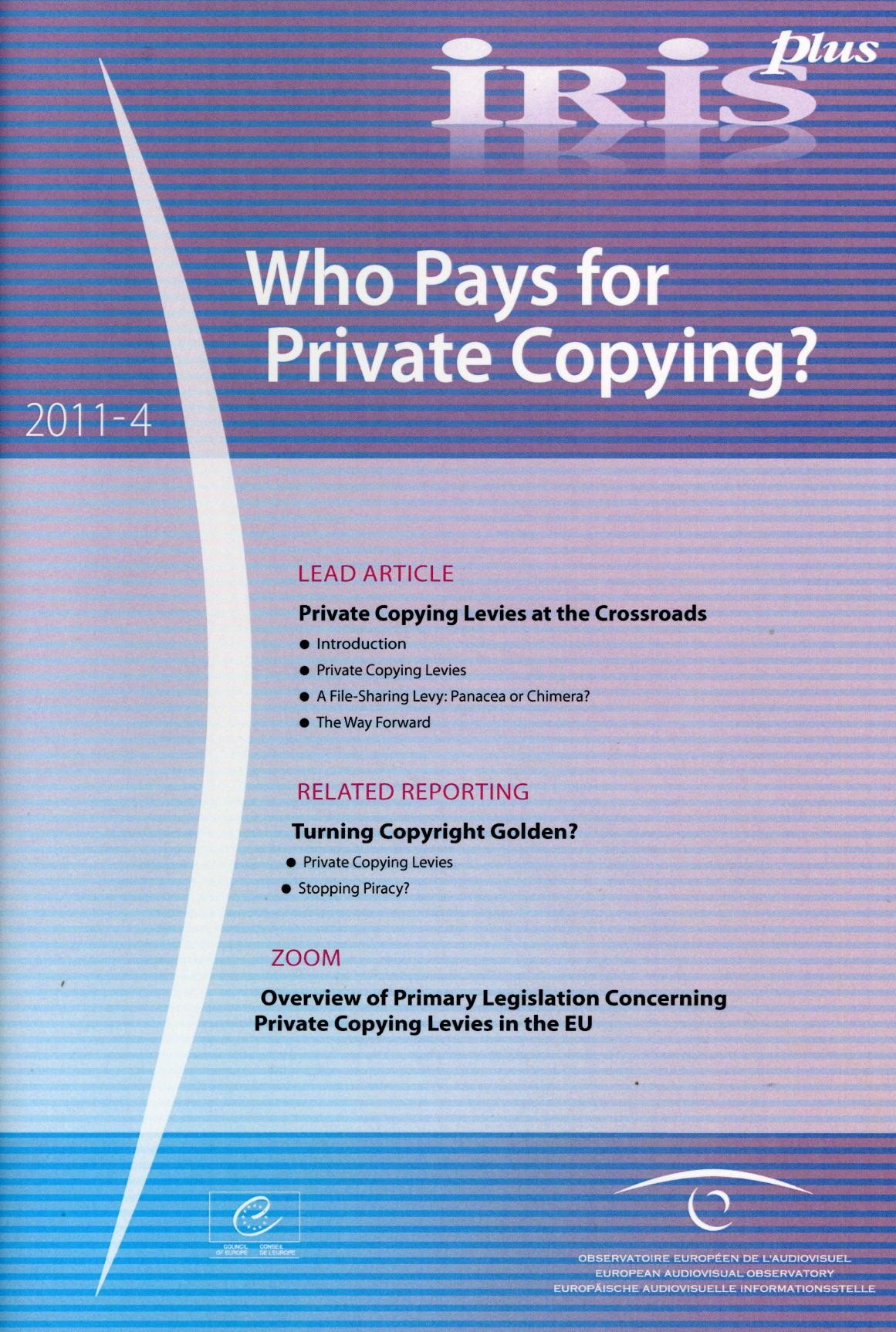 The private copying debate is not new - since the emergence of analogue copying devices, private copying has become a major issue for the content industry. However, the rules on compensation in the form of levies on copying devices and media, which have been developed since the 1960s, are no longer effective in the digital age. This IRIS plus presents the many different facets of the current debate on private copying levies and discusses the present legal situation in Europe after the ground-breaking, so-called "Padawan" judgment. It clearly demonstrates how difficult it is to balance the different interests and demands on levy systems. Practicability, conformity with the EU Directive, diverging opinions within the content industry, the curbing of pirate copying, the legalisation of a widespread practice, the fairness of the levies and issues linked to the distribution of levy income are crucial to the development of new levy systems.