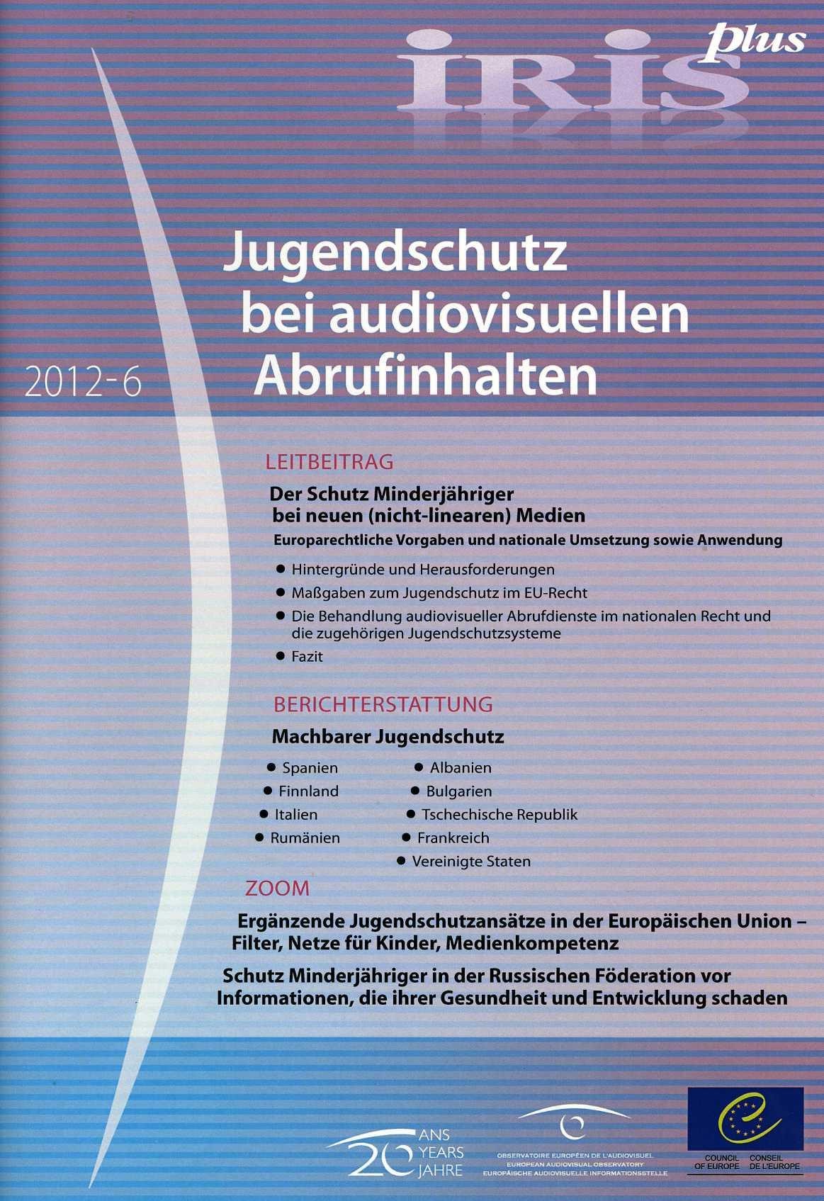 Das Tempo, mit dem audiovisuelle Abrufdienste gegenüber klassischen linearen Medien an Nutzern gewinnen, ist bemerkenswert. Aber in noch größerem Maße gewinnt das Thema Jugendmedienschutz an Bedeutung, da das rasant steigende Angebot an Abrufdiensten überproportional von den jüngeren und jüngsten Zuschauergruppen genutzt wird. Prinzipiell gilt für den Jugendschutz das Prinzip der zwischen Erziehungsberechtigten und Gesetzgeber geteilten Verantwortung, aber erstere zeigen sich in zunehmendem Maße durch diese Verantwortung überfordert. Damit fällt dem Gesetzgeber beim Jugendmedienschutz eine besonders bedeutende Rolle zu. Diese IRIS plus untersucht den Status quo des Schutzes von Kindern und Jugendlichen in Bezug auf audiovisuelle Abrufdienste, und zwar sowohl die unionsrechtlichen Bestimmungen als auch die Grundlagen und konkreten Regelungen verschiedener nationaler Jugendschutzsysteme.