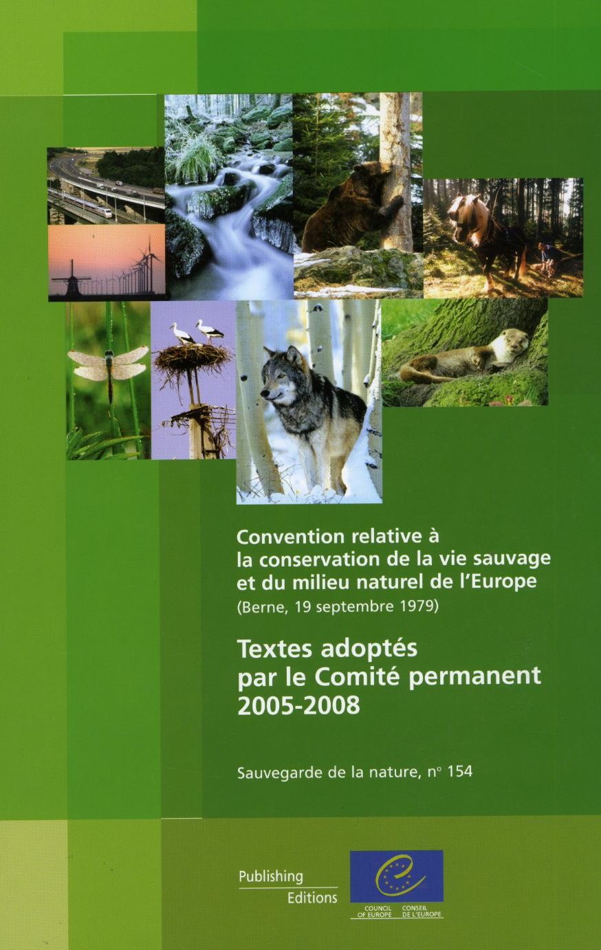 La Convention du Conseil de l'Europe relative à la conservation de la vie sauvage et du milieu naturel de l'Europe, «Convention de Berne», est entrée en vigueur le 1er juin 1982. Elle a pour objectif d'assurer la conservation de la biodiversité dans un cadre régional paneuropéen élargi à la région méditerranéenne et à l'Afrique.Ce document contient les textes adoptés entre 2005 et 2008 par le Comité permanent de la convention, composé des Parties contractantes. Les réunions du comité sont également suivies par des observateurs.Chargé de suivre l'application de la convention, le Comité permanent peut faire des recommandations aux Parties contractantes sur les mesures à prendre pour la mise en oeuvre de la convention. Il a également adopté divers textes.