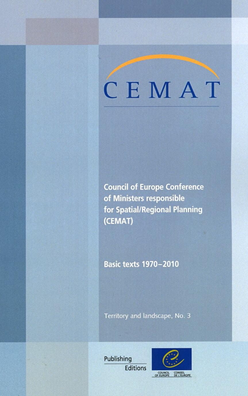 The Council of Europe European Conference of Ministers responsible for Regional/Spatial Planning (CEMAT) brings together representatives of the 47 member states of the Council of Europe, united in their pursuit of a common objective: sustainable spatial development of the European continent.This compendium presents the texts adopted by CEMAT between 1970 and 2010 and the most important texts adopted by the Committee of Ministers of the Council of Europe regarding CEMAT.